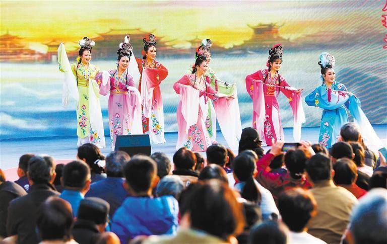 11月15日,安徽省淮北市运河古镇,黄梅戏演员为观众带来一场精彩的戏曲盛宴。 李 鑫摄(中经视觉)