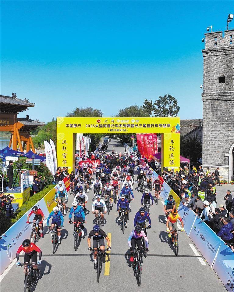 11月2日,2025大运河自行车系列赛暨长三角自行车穿越赛(徐州新沂站)在江苏徐州窑湾古镇开赛。近年来,越来越多的体育赛事在古镇举办,为体旅融合发展注入新动能。高 刚摄(中经视觉)