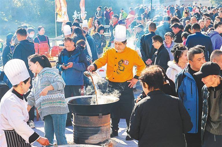 11月29日,浙江省湖州市德清县新市古镇举办羊肉大集,厨师现场烹制羊肉,引人争相品尝。 姚海翔摄(中经视觉)