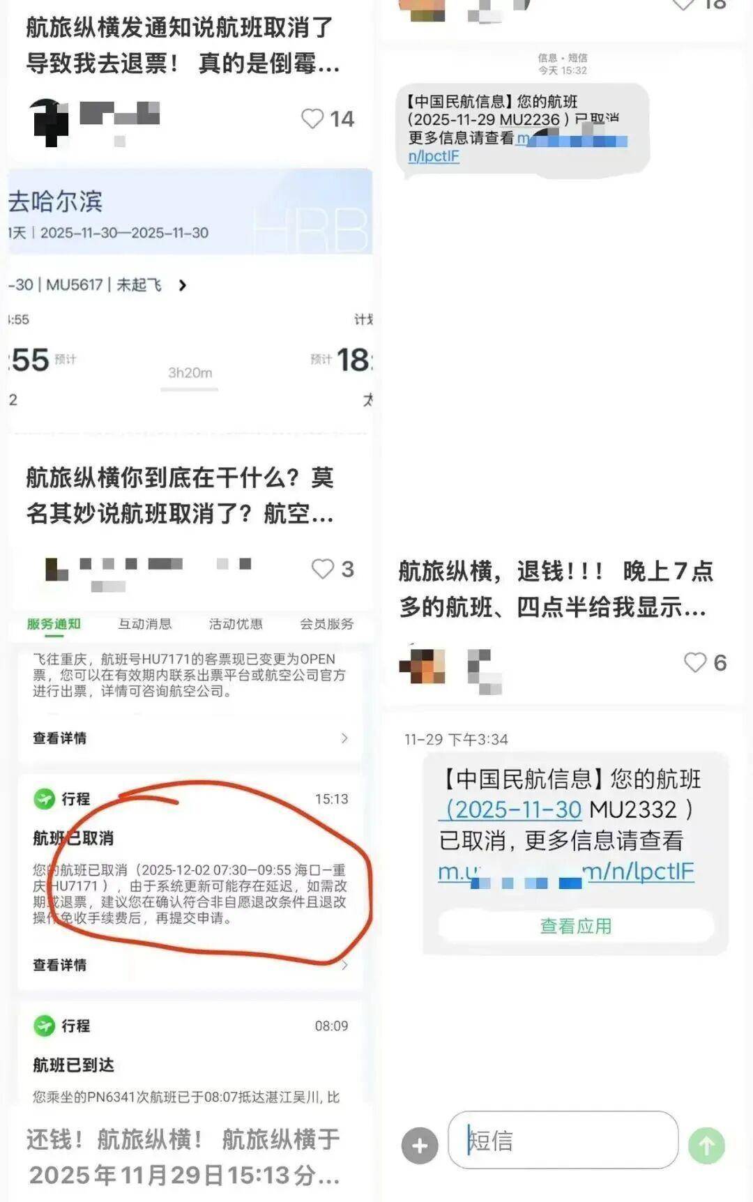 此外,还有部分网友称,在收到航旅纵横推送后,重新买了票,因此承担了票价差价及退票手续费。“我们马上重新订了今晚最后一班能回到目的地的机票,同时产生了退票费及最新航班的差价。结果是航旅纵横系统Bug造成大面积错误通知!”