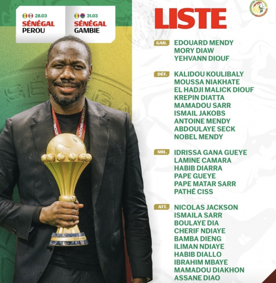 与此同时,塞内加尔足协今日公布了最新一期的国家队大名单。在公布名单的海报中,塞内加尔主帅手捧奖杯的照片显得格外明显。塞内加尔足协试图用这样的方式告诉全世界:我们才是冠军。