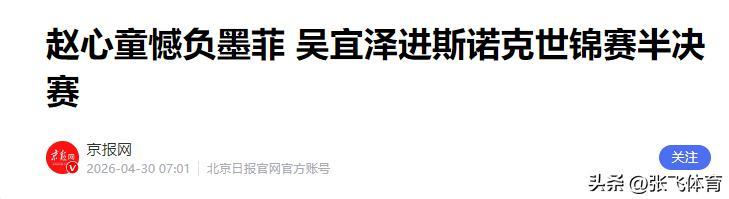 京报网——赵心童憾负墨菲 吴宜泽进斯诺克世锦赛半决赛
