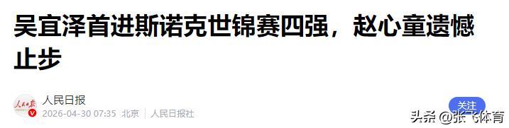 人民日报——吴宜泽首进斯诺克世锦赛四强,赵心童遗憾止步