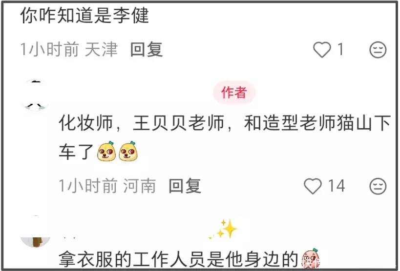 当被问询如何确认车内乘坐的是李健,粉丝表示车旁拿衣服的是李健的工作人员,他们都是从车内下来的。对于李健没有露面的情况,粉丝们表示李健是被前一天的“高人气堵车门”吓到,并没有认为他在耍大牌。事实上,李健前一天一下车就被“围攻”,在人群中挤着走出去的,可见他能开车进场也是为了安全考量。
