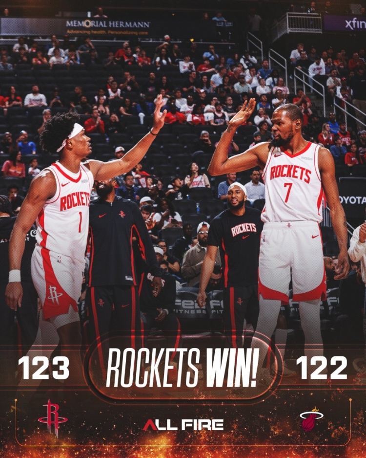 3月22日讯 NBA常规赛,火箭主场123-122险胜热火。